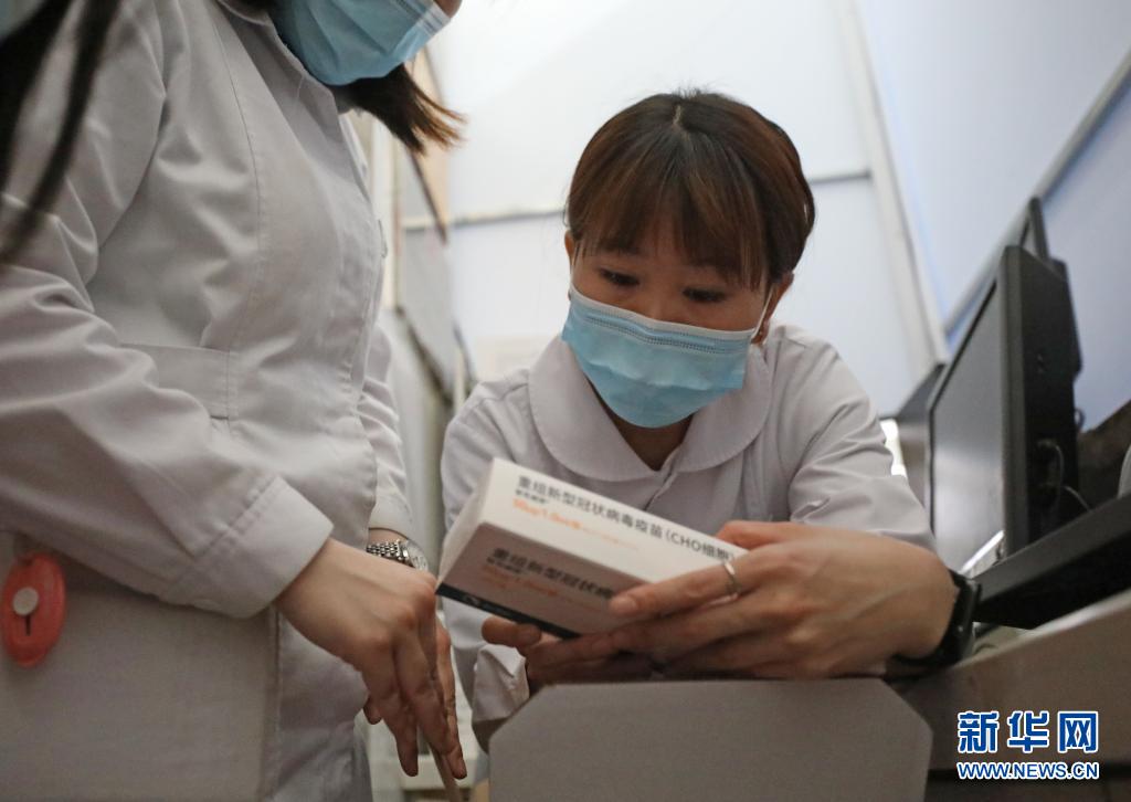 5月19日,苗佳婷在辽宁省沈阳市大东区新冠疫苗接种方舱核对新到疫苗的信息。
