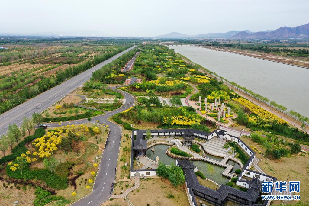 河北省涿鹿县桑干河滨河公园(5月19日摄,无人机照片)。