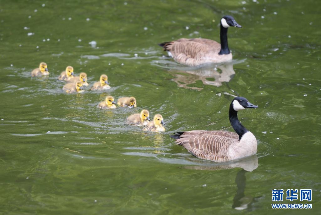 这是5月19日在德国法兰克福的美茵河拍摄的加拿大雁。