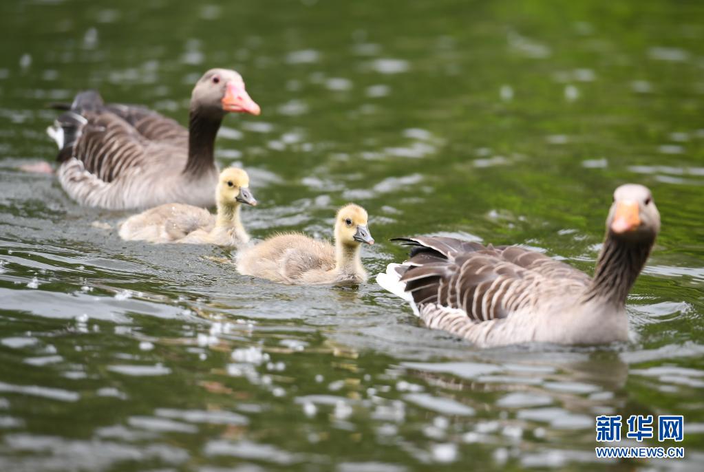 这是5月19日在德国法兰克福的美茵河拍摄的灰雁。