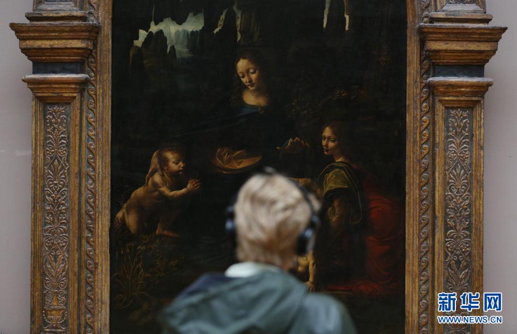 5月19日,一名女子在法国巴黎的卢浮宫博物馆参观达·芬奇名画《岩间圣母》。