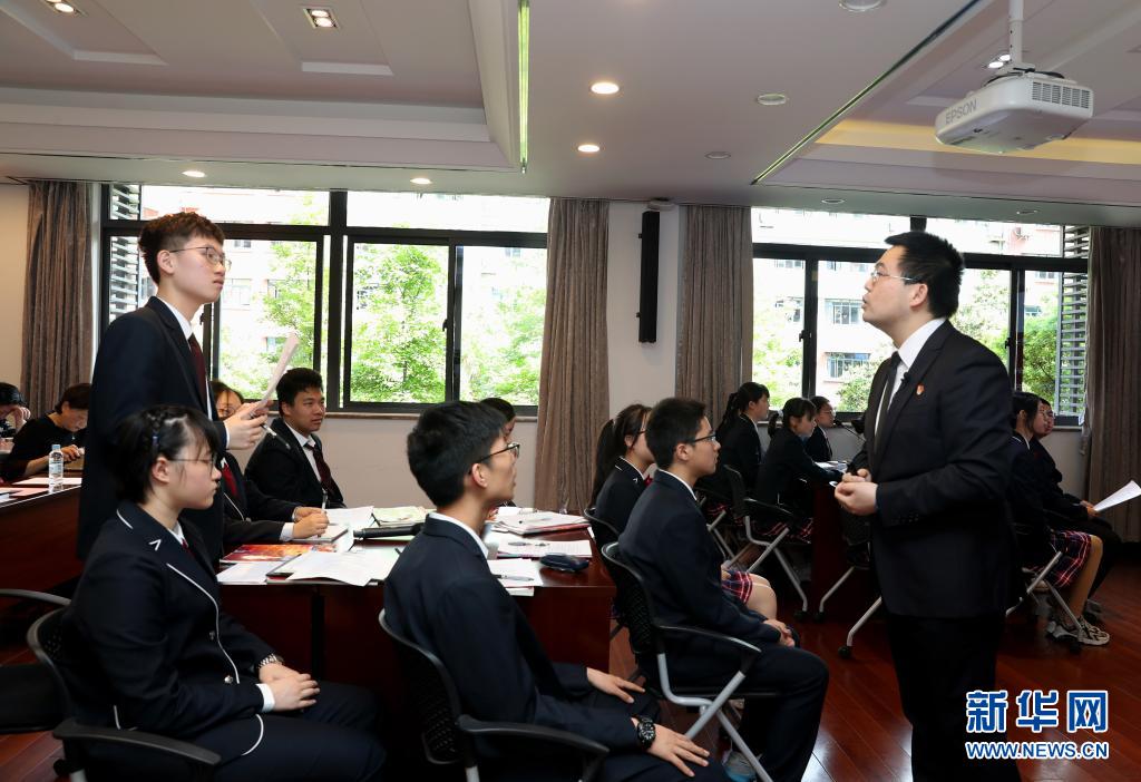 5月19日,黄浦区光明中学赵程斌老师的高一年级思政课《从兴业路走向复兴路——中国共产党的红船精神》上,学生在分享课外阅读经典著作的心得体会。