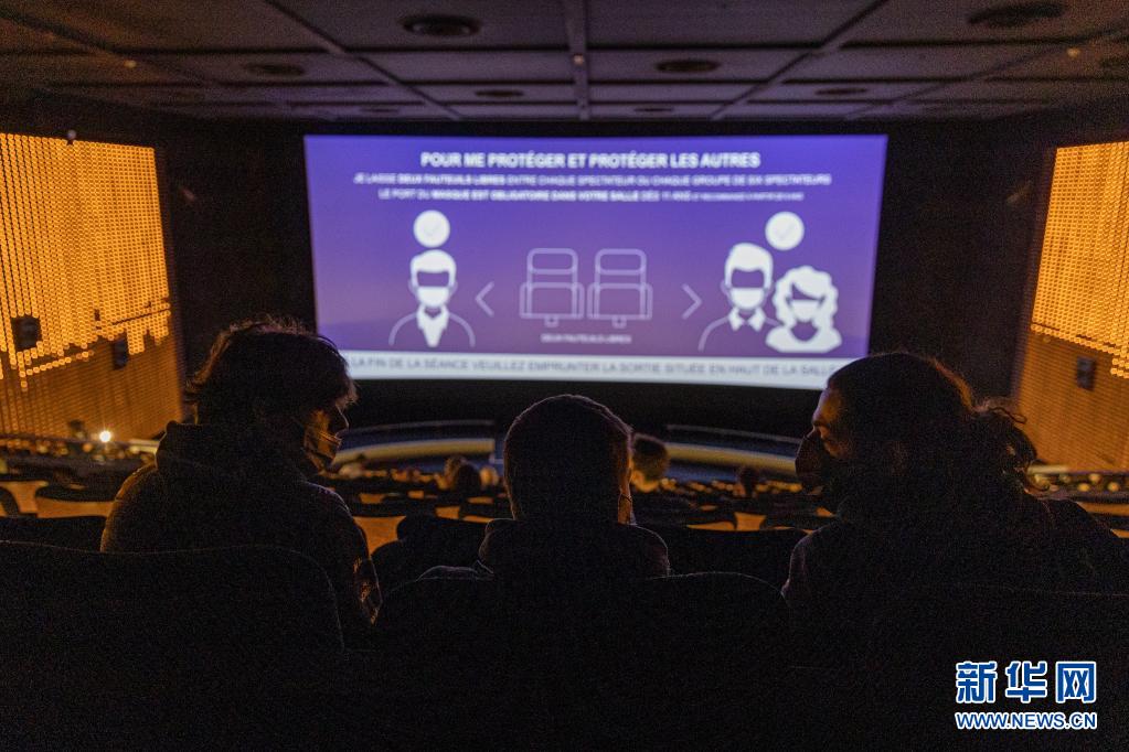 5月19日,人们在法国巴黎一家重新营业的电影院看电影。