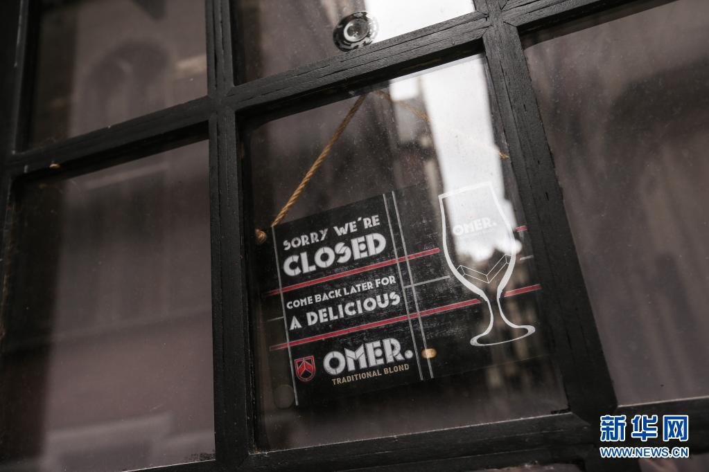 5月19日,比利时布鲁塞尔的一家酒吧门上挂出“关门”的标识。欧盟统计局18日发布的数据显示,今年一季度,欧元区和欧盟经济分别环比下降0.6%和0.4%,均为连续第二个季度下滑。新华社记者 郑焕松 摄