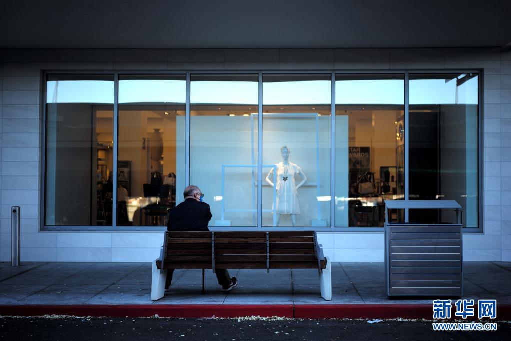 5月19日,一名男子坐在美国加利福尼亚州北部圣马特奥的一家购物中心外。