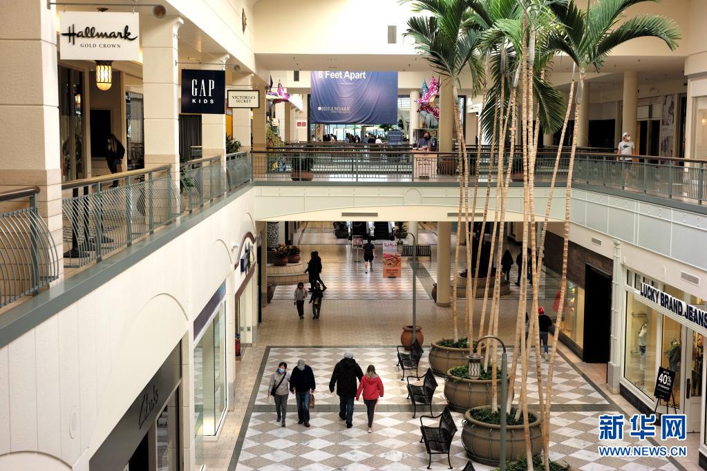 5月19日,人们从美国加利福尼亚州北部圣马特奥的一家购物中心走廊上走过。