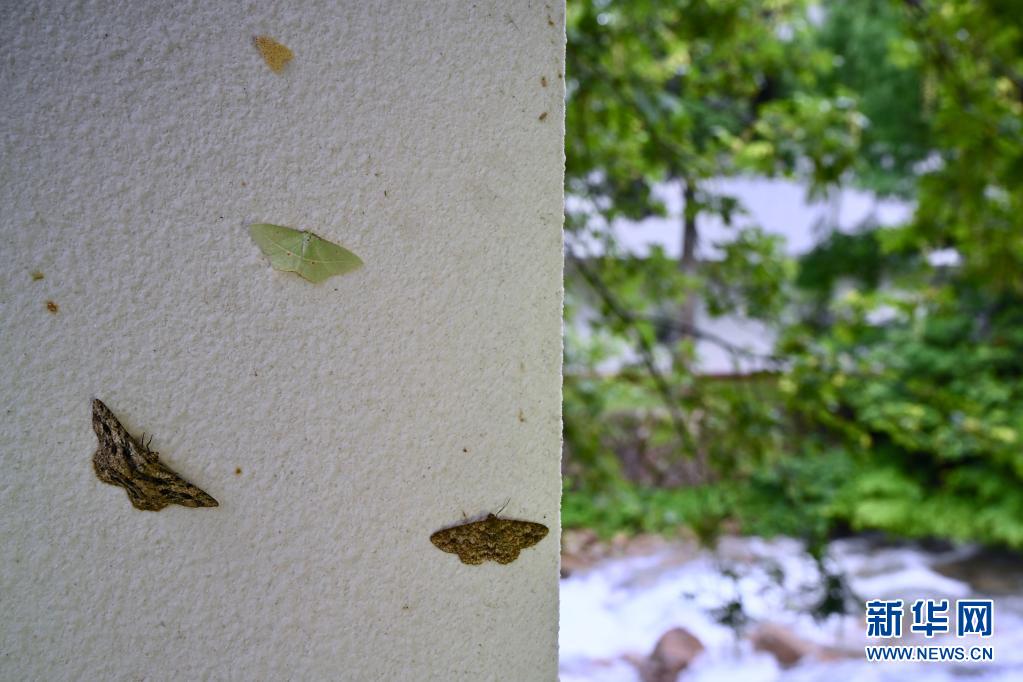 5月18日,几只飞蛾在武夷山国家公园建筑墙壁上停留。新华社记者姜克红摄