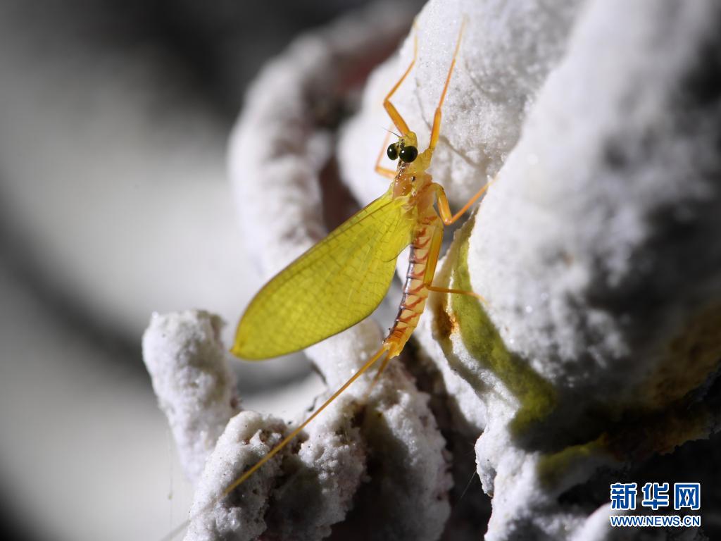 5月17日,武夷山国家公园内一只蜉蝣停留在桐木村墙外。新华社记者姜克红摄