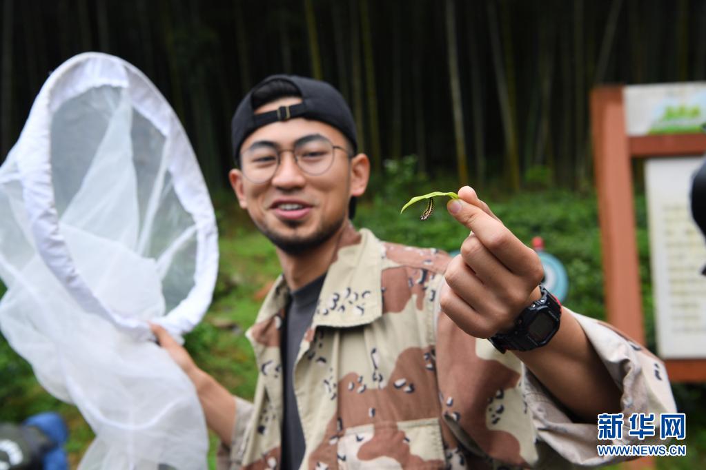5月17日,昆虫专项科考队员展示在武夷山国家公园大竹岚发现的苎麻珍蝶蛹。新华社记者姜克红摄