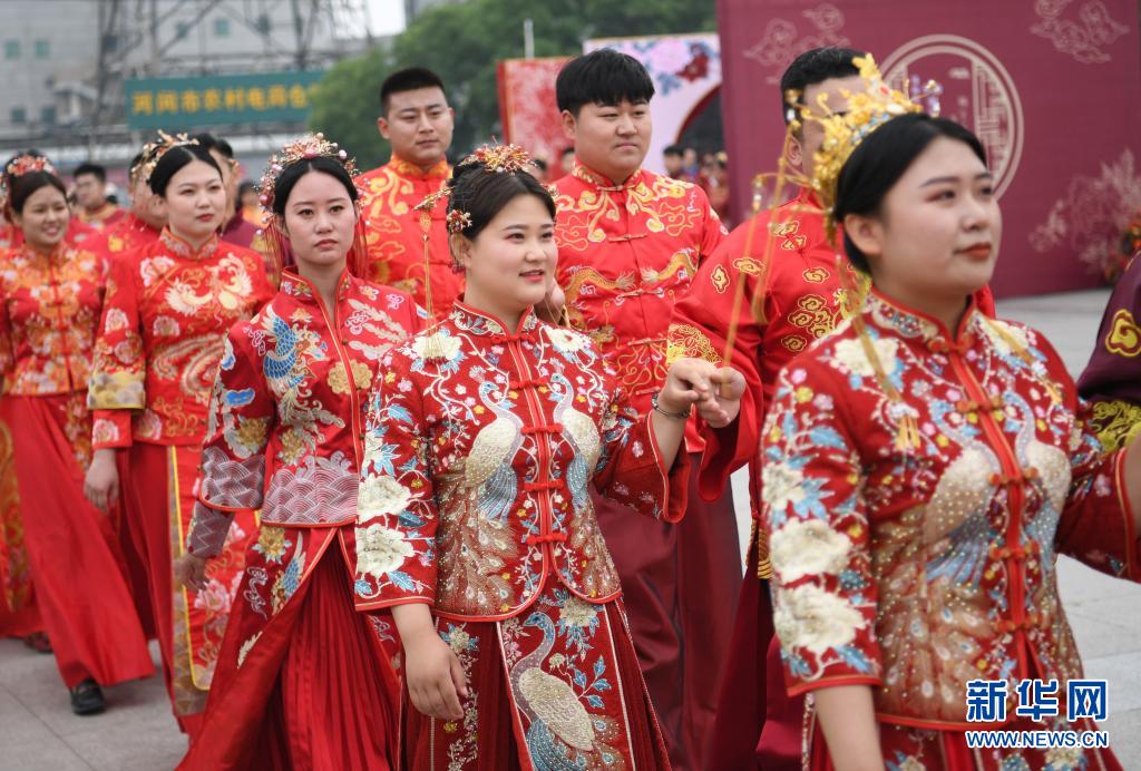 当日,河北省河间市在瀛海公园举办“零彩礼”公益集体婚礼,26对新人身穿中式传统婚服执手入场,倡导“移风易俗、婚事新办”新理念,引领文明节俭的婚嫁新风尚。