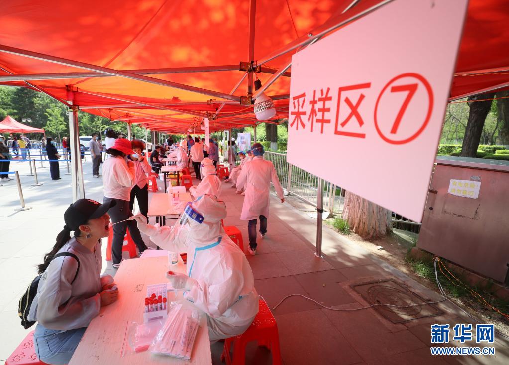 5月19日,市民在辽宁省沈阳市和平区太原街街道中山公园核酸检测点进行核酸检测。新华社记者 杨青 摄