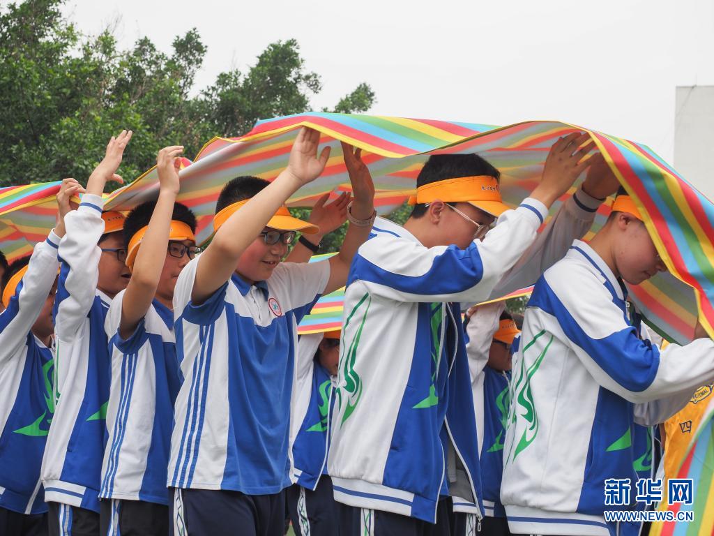 5月20日,四川广汉中学实验高新分校学生通过游戏提升团队协作精神。