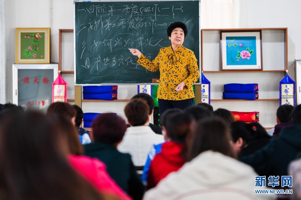 3月23日,在科尔沁右翼中旗巴彦呼舒镇,蒙古族刺绣产业带头人白晶莹在给绣工们上课。