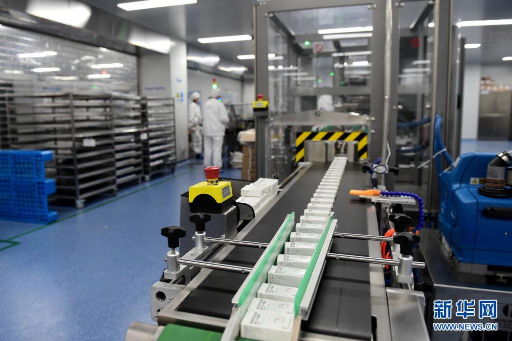 5月20日,在安徽智飞龙科马生物制药有限公司新冠疫苗生产线上,工作人员对疫苗进行包装。