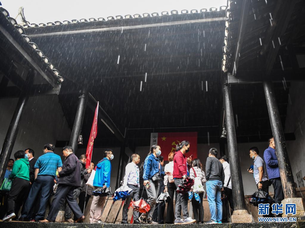 来自百色老区的党员在广西兴安县界首红军堂参观(5月19日摄)。