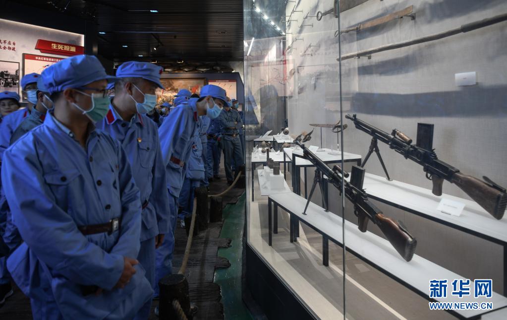 在红军长征湘江战役纪念馆,党员们参观“血战湘江突重围”展陈(5月18日摄)。