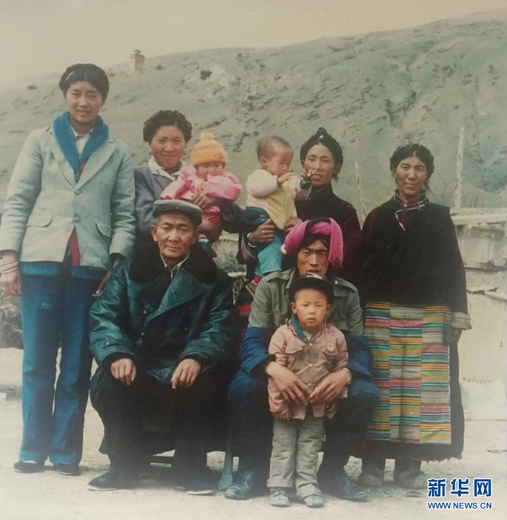 彭德玉(左前)与家人合影(资料照片)。新华社发