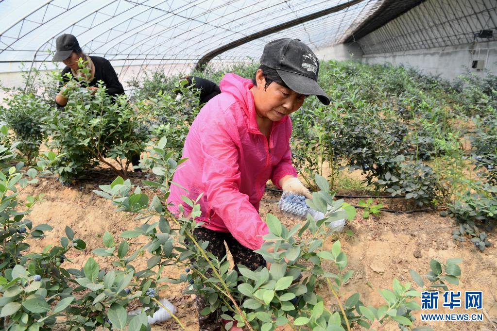 5月20日,在天津市蓟州区马伸桥镇蓝莓产业园,果农在采摘蓝莓。