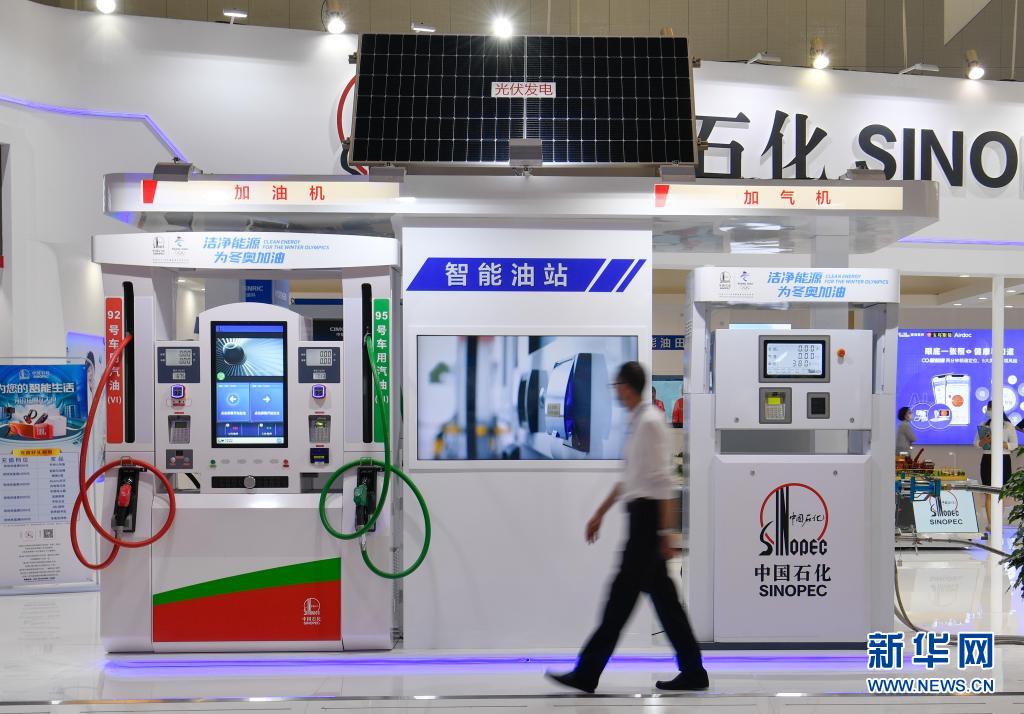 5月20日,在天津梅江会展中心,参观者走过智能油站。