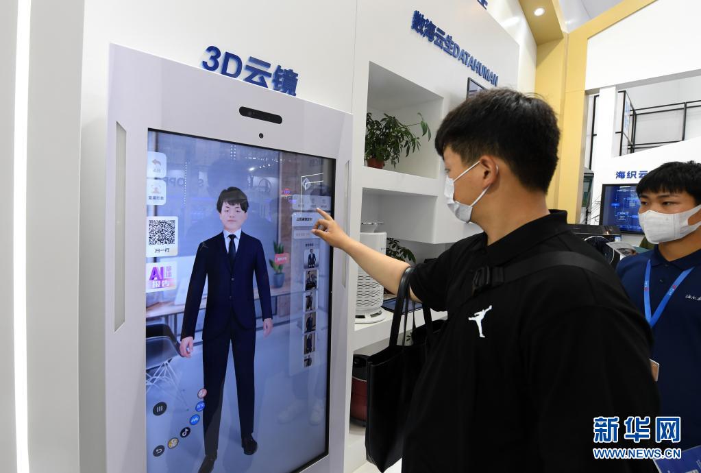 5月20日,在天津梅江会展中心,参观者在体验3D云镜。