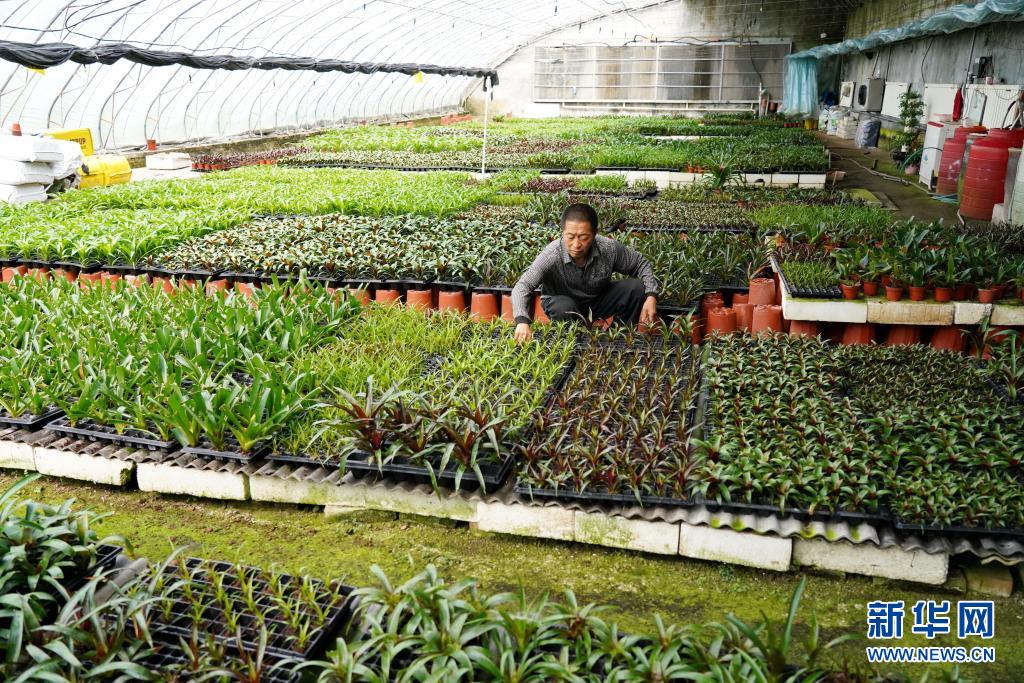 5月20日,河北省涿鹿县谢家堡乡宋家庄村农民在大棚内管护花苗。