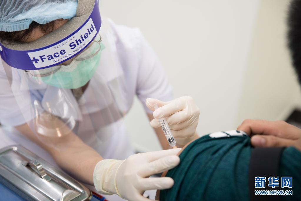 5月20日,医务人员在曼谷邦叻区疫苗接种中心为中国公民接种疫苗。