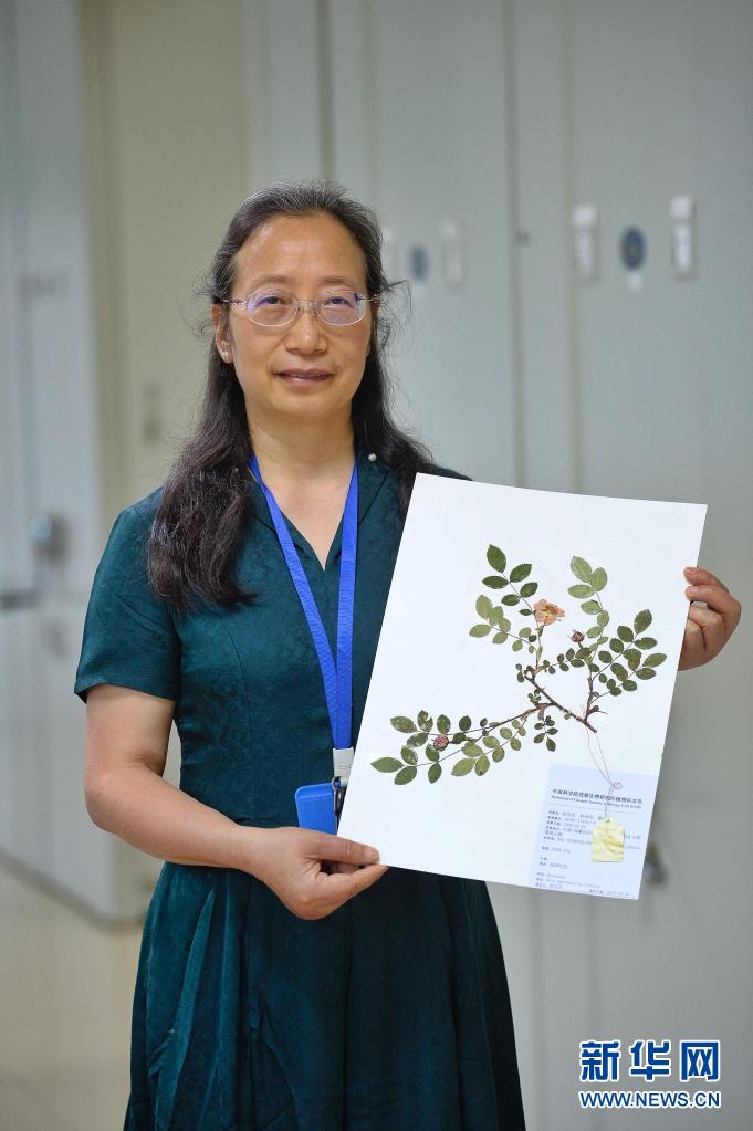 5月17日,高信芬在中国科学院成都生物研究所植物标本馆内展示她采集的标本。
