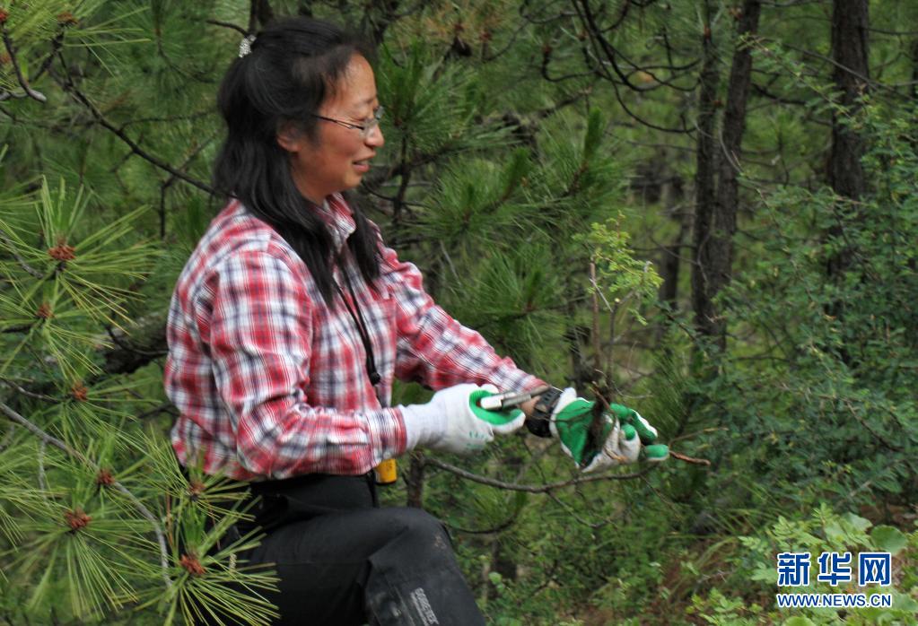 2011年,高信芬在四川省乡城县采集绢毛蔷薇小苗,准备将该品种迁地保育(资料照片)。新华社发