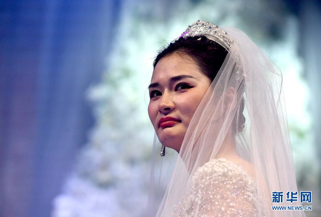 5月20日,乔冰在婚礼上回望父母。新华社记者 李安 摄