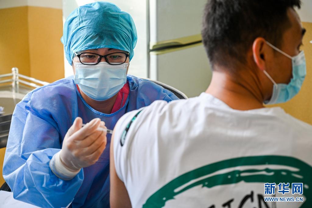 5月21日,社区居民在呼和浩特市回民区海西路新冠疫苗接种点接种疫苗。