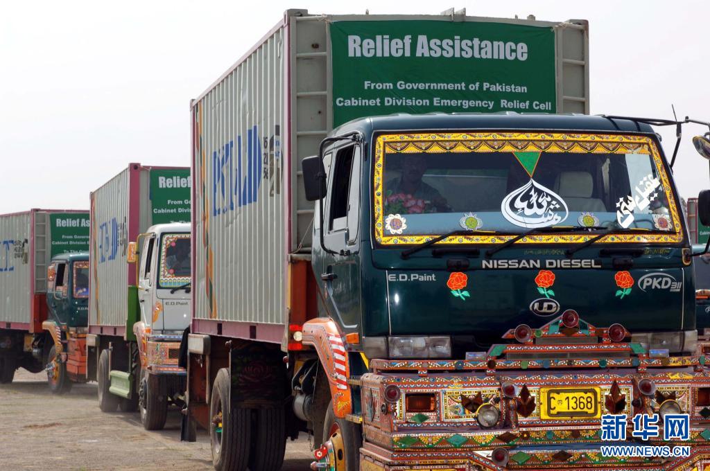 2008年5月21日,载有6000顶帐篷的卡车从巴基斯坦首都伊斯兰堡警察局总部出发,通过中巴友谊公路——喀喇昆仑公路运往中国,解中国地震灾区急需。新华社记者 李敬臣 摄