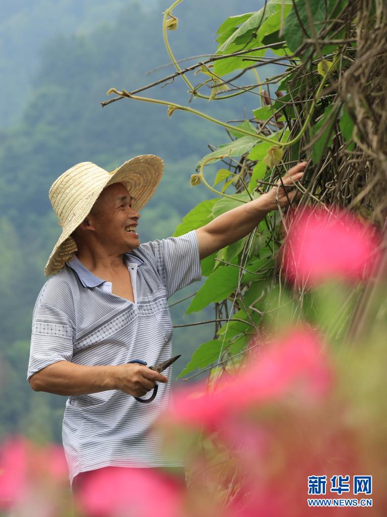 5月21日,湖南省张家界市武陵源区协合乡的农民对葛苗进行管理。新华社发(吴勇兵摄)