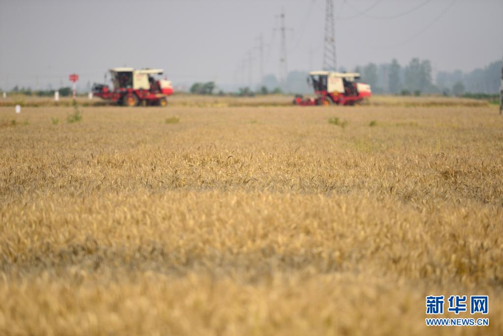 5月21日,湖北省宜城市小河镇民政村小麦开镰收割。新华社发(安富斌摄)