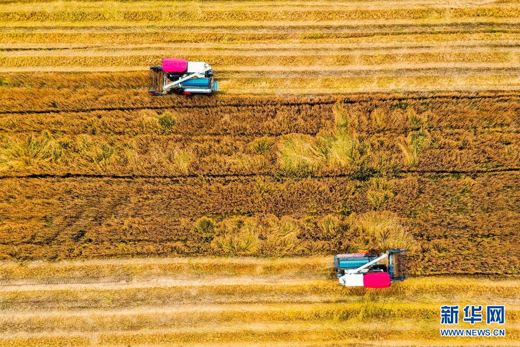 5月21日,农民驾驶收割机在浙江省湖州市长兴县和平镇田间收获小麦。新华社发(吴拯摄)