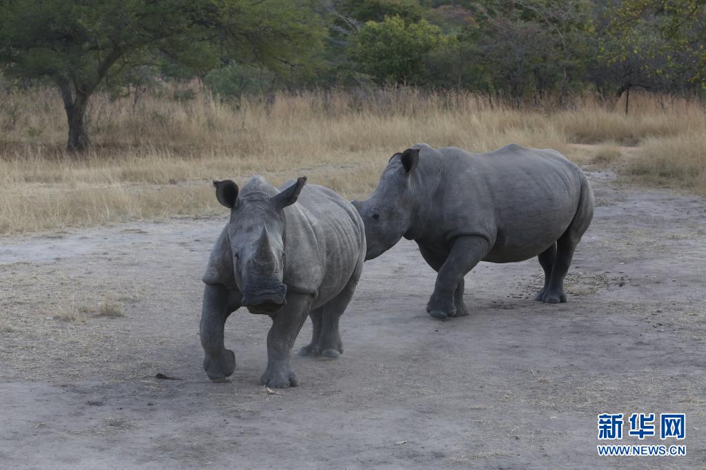 这是2020年6月5日在津巴布韦首都哈拉雷附近的赛特福德保护区拍摄的白犀牛。