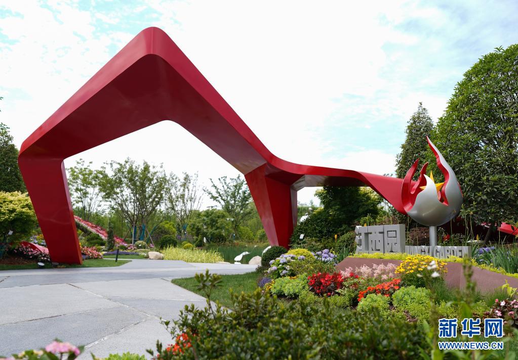 5月21日拍摄的花博会国内展区江西园内的星火模型。