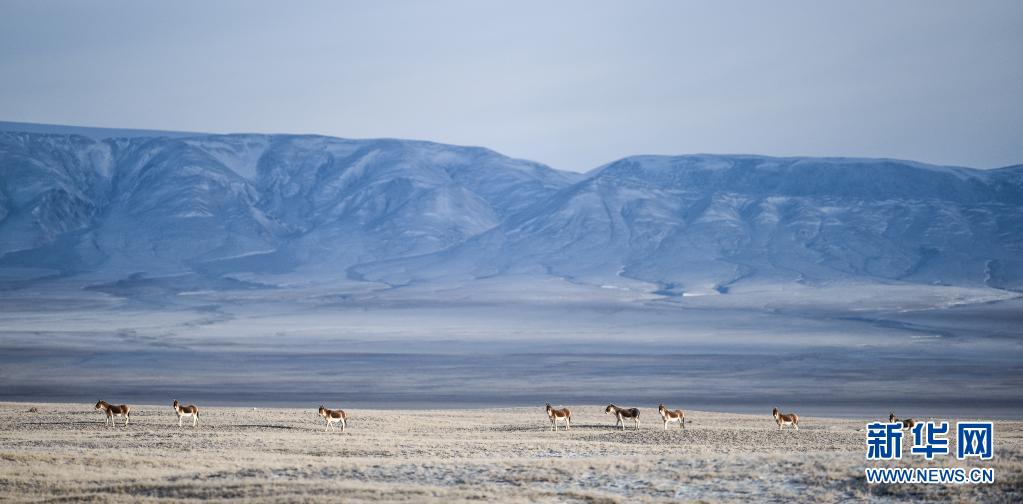 2016年12月2日,藏野驴在三江源可可西里地区活动。