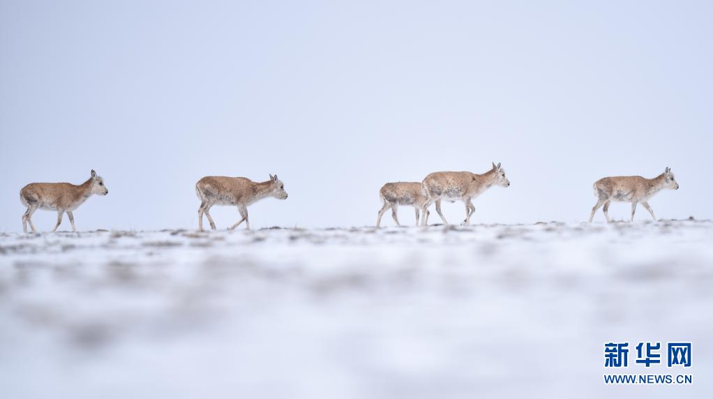4月20日,藏羚羊在三江源可可西里地区活动。