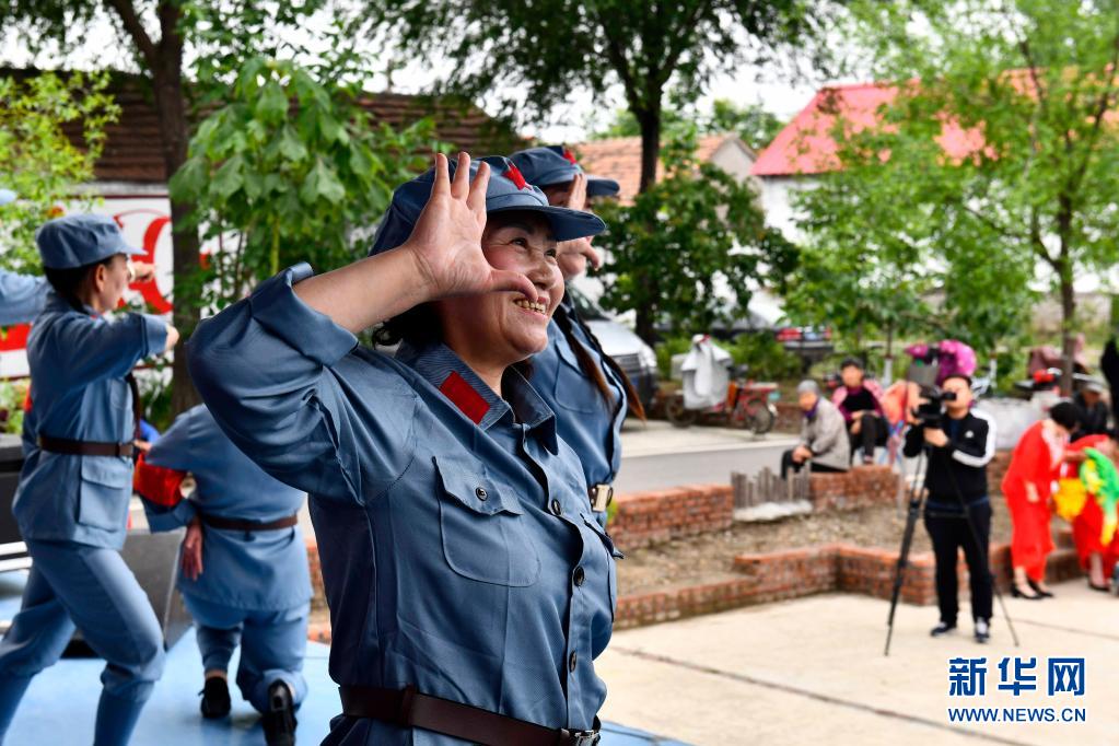5月21日,在枣庄市台儿庄区马兰屯镇西张庄村,“学党史惠民”文艺小分队为群众表演节目。