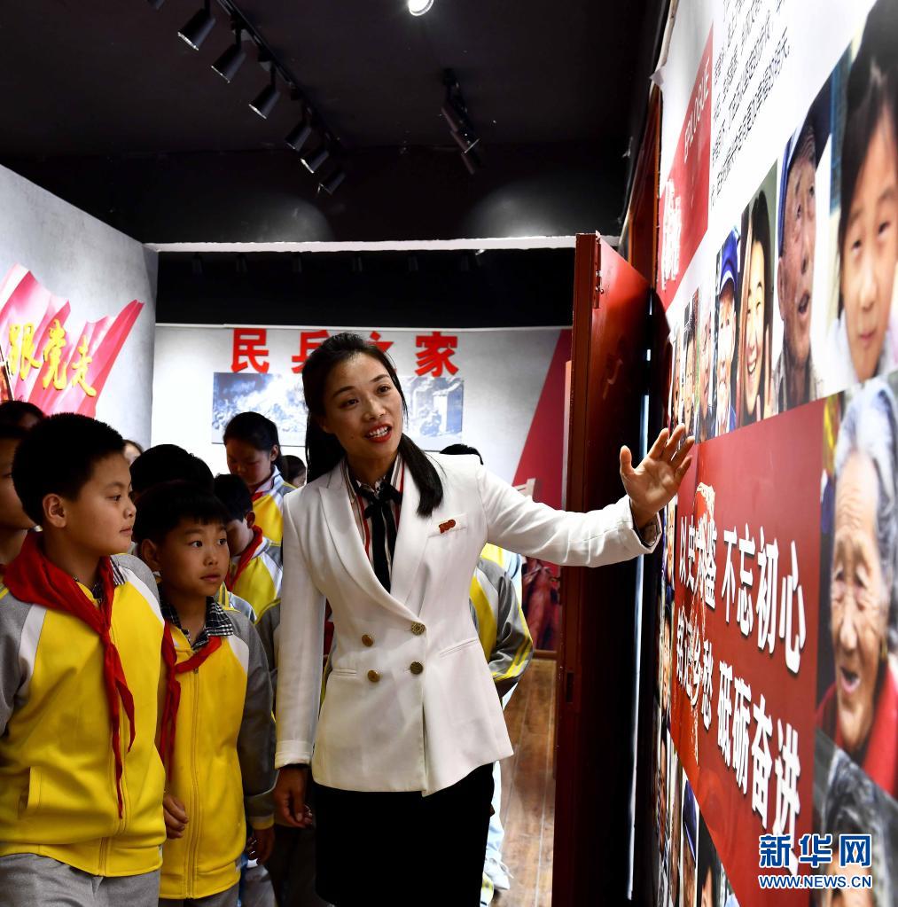5月21日,在枣庄市台儿庄区张山子镇丁庄村,“学党史惠民”教育小分队成员李冉为学生们讲解八路军115师运河支队的故事。