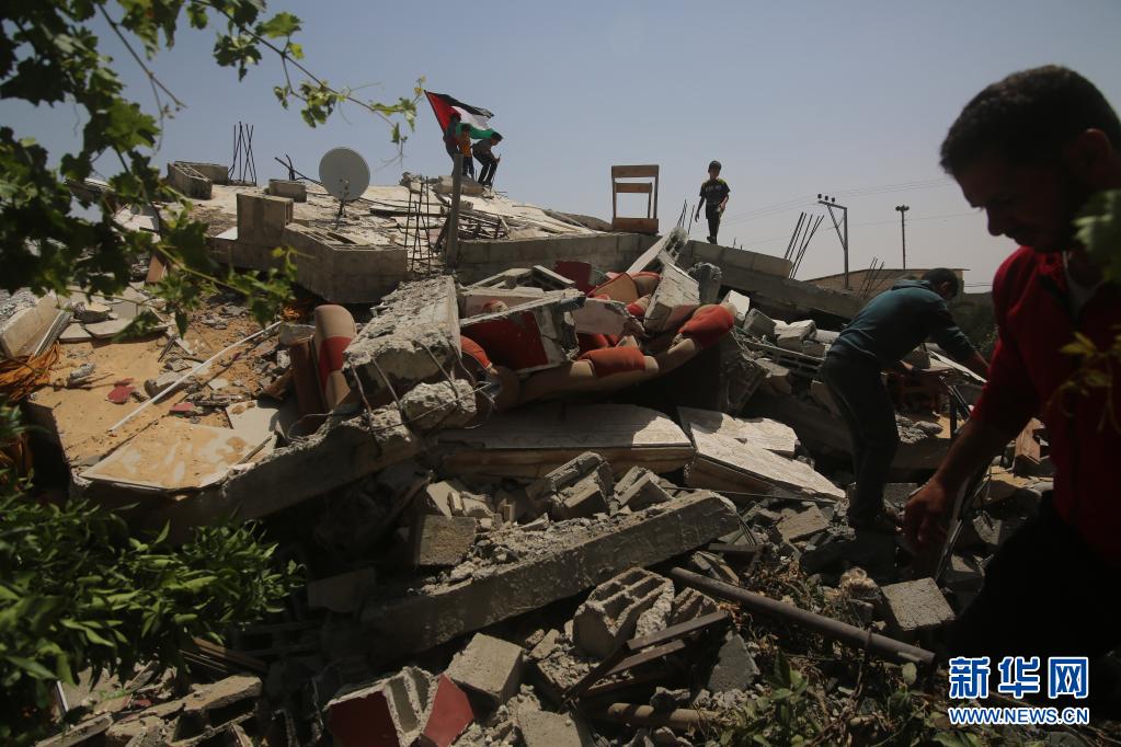 5月21日,巴勒斯坦人在加沙地带的拉法查看遭以军空袭损毁的自家房屋。新华社发(哈利德·奥马尔摄)