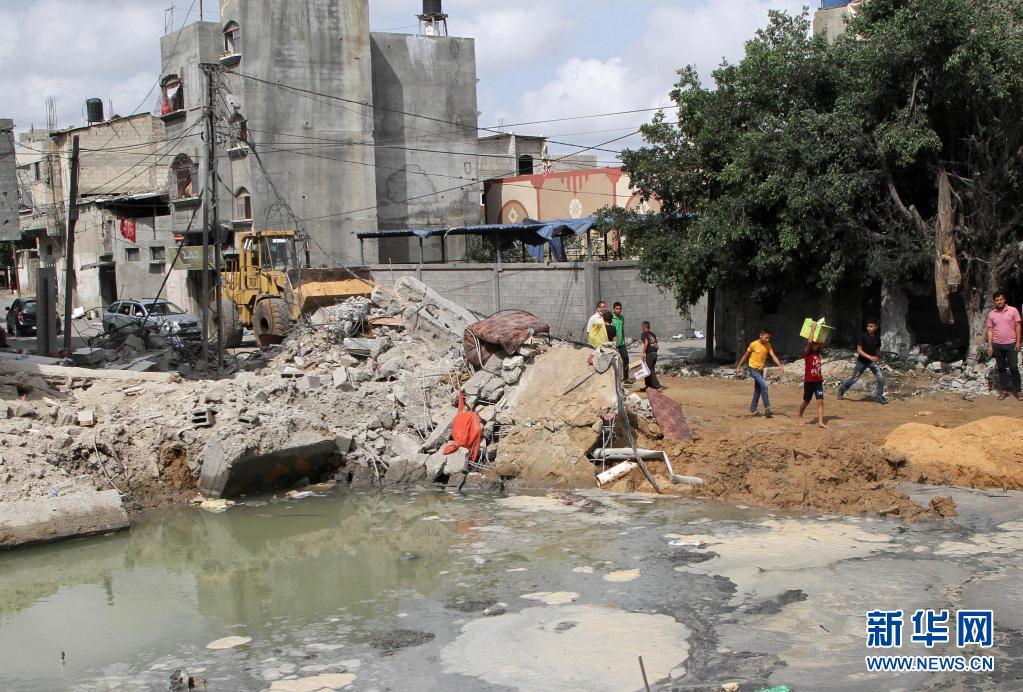 5月21日,巴勒斯坦人在加沙地带北部的贝特拉西亚查看遭以军空袭损毁的房屋。新华社发(里泽克·阿卜杜勒·贾瓦德摄)