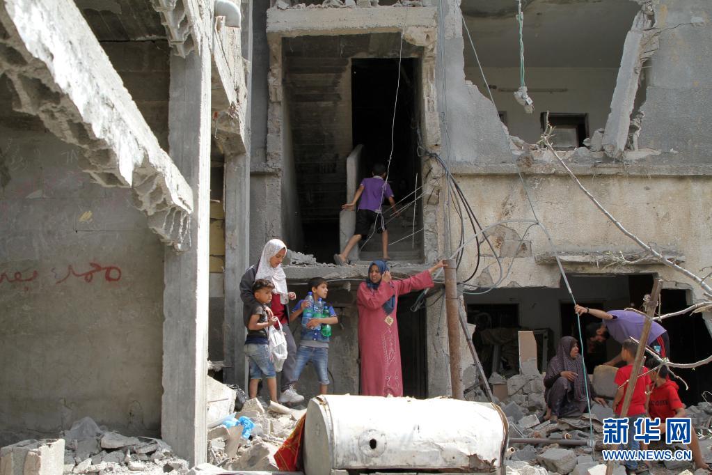 5月21日,巴勒斯坦人在加沙地带北部的拜特哈嫩查看遭以军空袭损毁的自家房屋。新华社发(里泽克·阿卜杜勒·贾瓦德摄)
