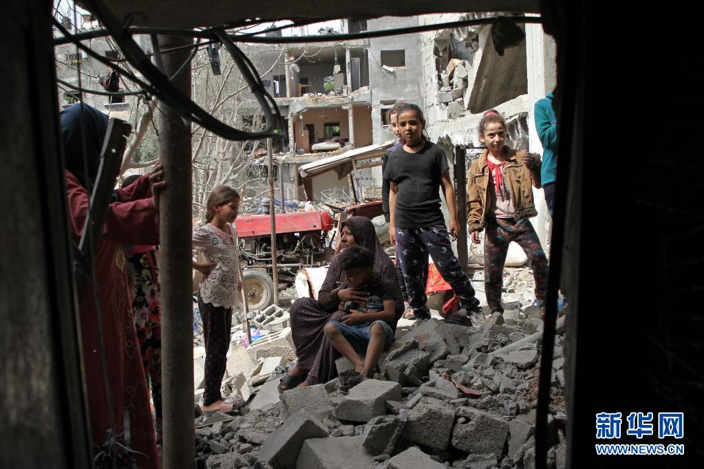 5月21日,巴勒斯坦人在加沙地带北部的拜特哈嫩查看遭以军空袭损毁的自家房屋。新华社发(里泽克·阿卜杜勒·贾瓦德摄)