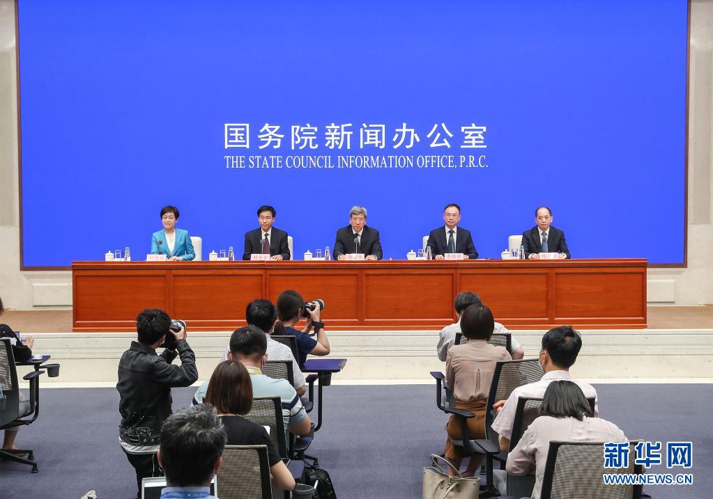 5月21日,国务院新闻办公室在北京举行国务院政策例行吹风会,请财政部副部长许宏才、财政部预算司司长李敬辉、财政部国库支付中心主任刘金云、审计署财政审计司司长魏强介绍常态化财政资金直达机制有关情况,并答记者问。新华社发(赵一帆 摄)