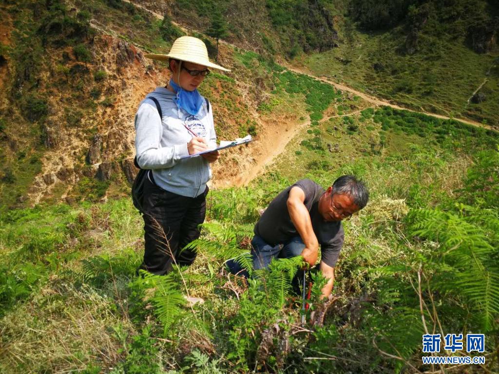 技术人员在监测回归地富民枳的生长情况(资料照片)。新华社发(昆明市濒危动植物收容拯救中心供图)
