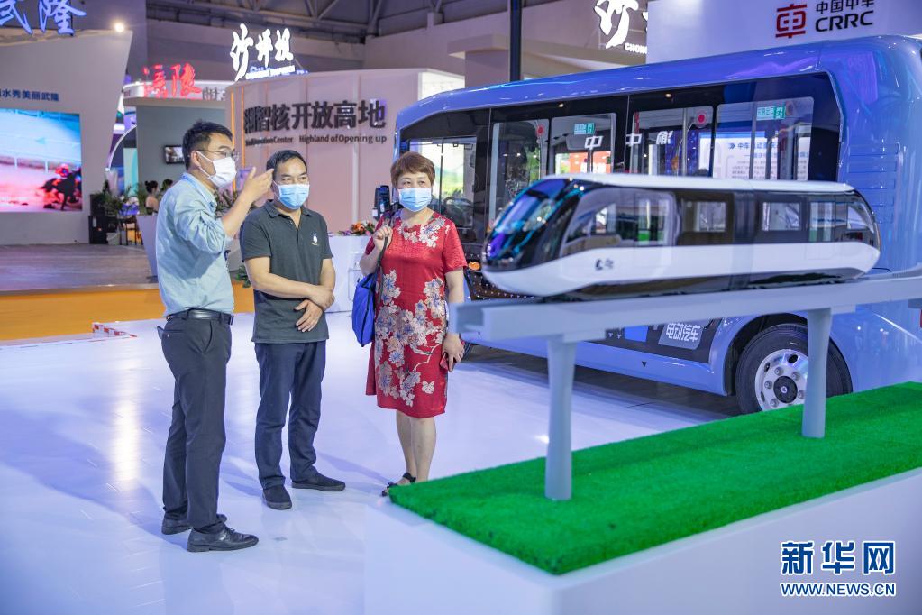 5月21日,观众在西洽会重庆璧山展区听工作人员介绍云巴。