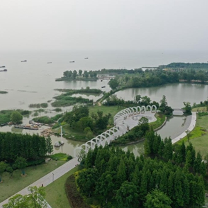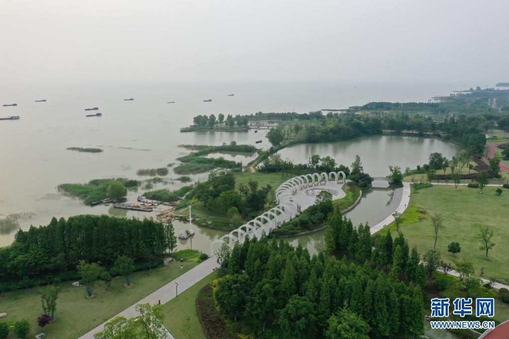 5月21日拍摄的宿迁市罗曼园(无人机照片)。罗曼园是当地骆马湖边集生态观光、文化体验、休闲娱乐等功能为一体的城市公园。
