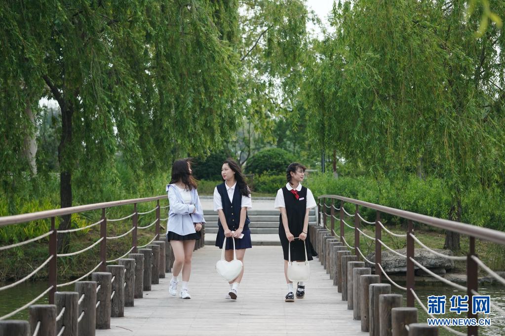 5月21日,几位女孩在宿迁市罗曼园漫步。罗曼园是当地骆马湖边集生态观光、文化体验、休闲娱乐等功能为一体的城市公园。