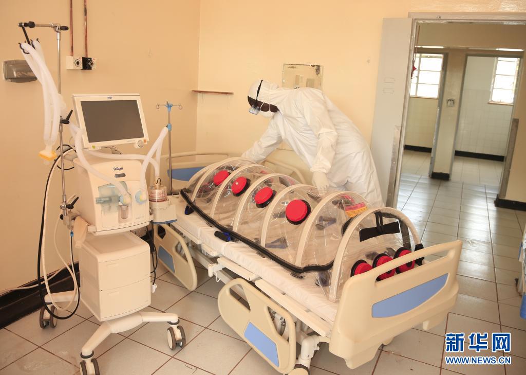 2020年4月9日,在津巴布韦首都哈拉雷,一名医生在由中资民营企业出资升级改造的威尔金斯医院内工作。升级改造后,医院基础设施和诊治条件得到大幅改善,治疗病患能力大大提升。新华社发(肖恩·朱萨摄)